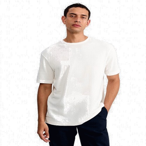 Cotton Rich Waffle Textured T-Shirt in Cream