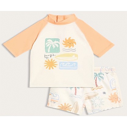 F&F Baby 2-Piece Surf Print Rash Vest and Swim Shorts Set in Orange