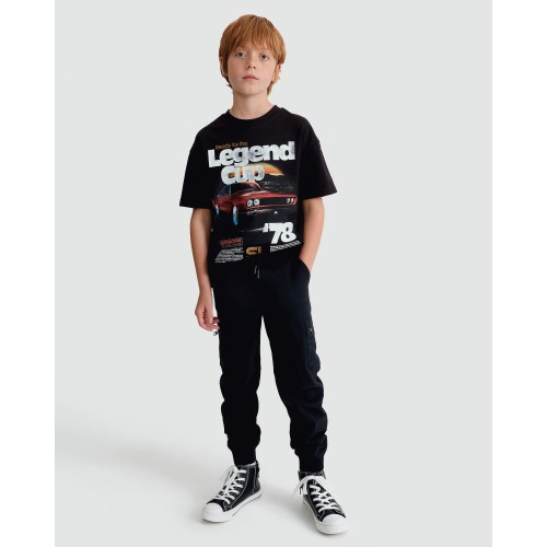 F&F Boys Cuffed Cargo Joggers in Black