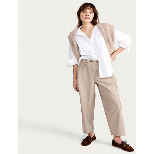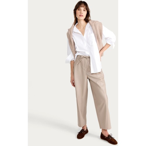 Faux Leather Barrel Leg Drawstring Trousers in Med Nude