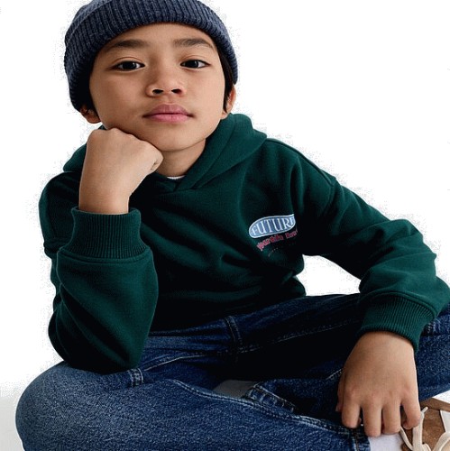 F&F Boys Cotton Rich Slogan Hoodie in Green