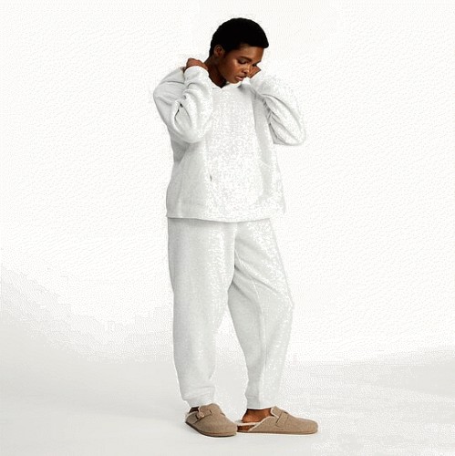Fleece Kangaroo Pocket Pyjama Hoodie in Grey