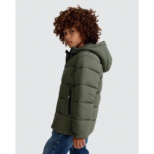 F&F Boys Shower Resistant Hooded Puffer Jacket in Khaki
