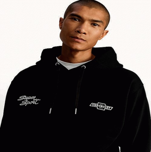 Chevrolet Oversized Slogan Hoodie in Black