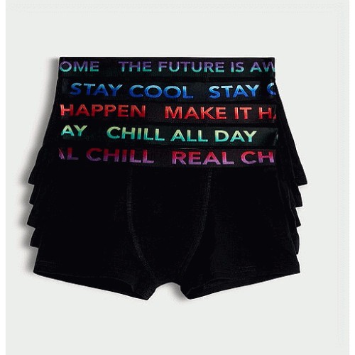 Boys 5-Pack Cotton Rich Slogan Waistband Boxers in Black Multi