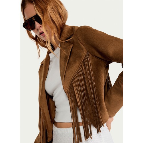 Faux Suede Fringed Jacket in Brown