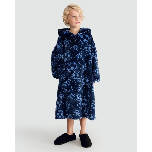Boys Fleece Football Print Pyjama Hoodie in Navy