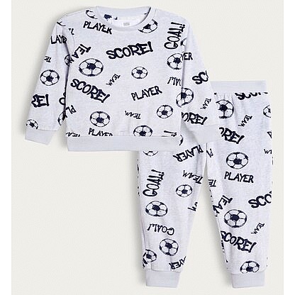 Boys Minky Football Print Long Sleeved Pyjama Set in Grey