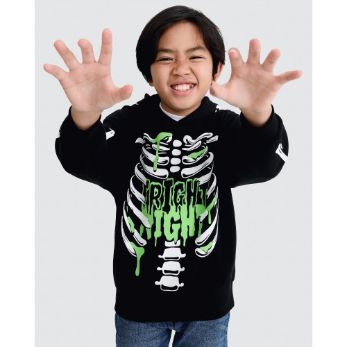 F&F Boys Cotton Rich Fright Night Skeleton Print Hoodie in Black