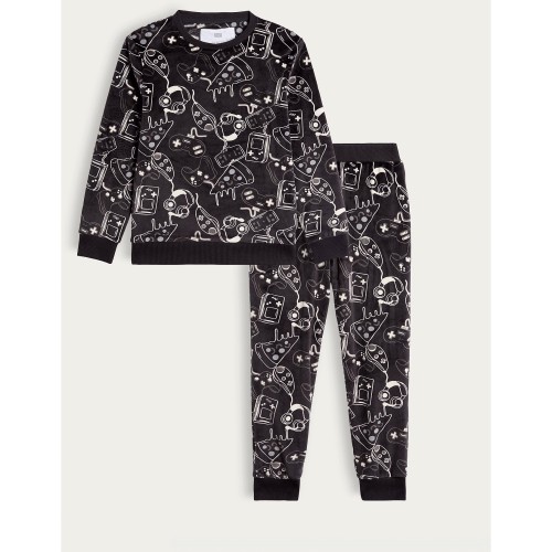 F&F Boys Fleece Gaming Print Pyjama Hoodie in Grey