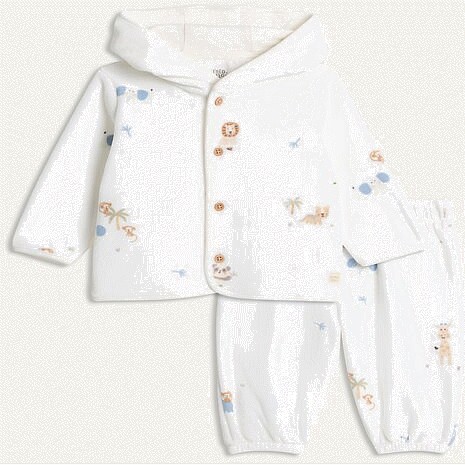 2-Piece Fleece Animal Print Hoodie and Joggers Set in White