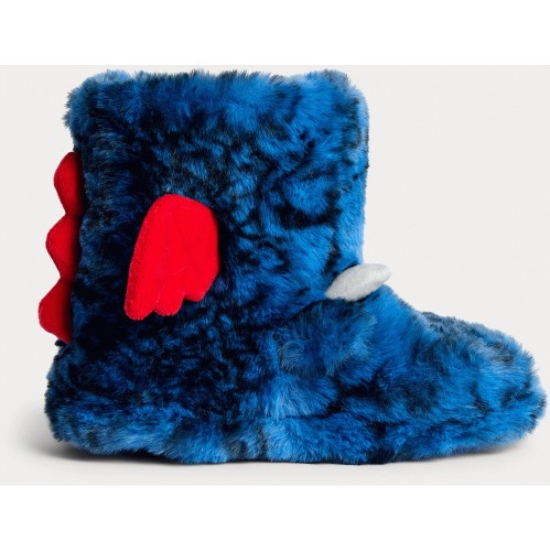 Boys Fleece Dino Monster Boot Slippers in Blue