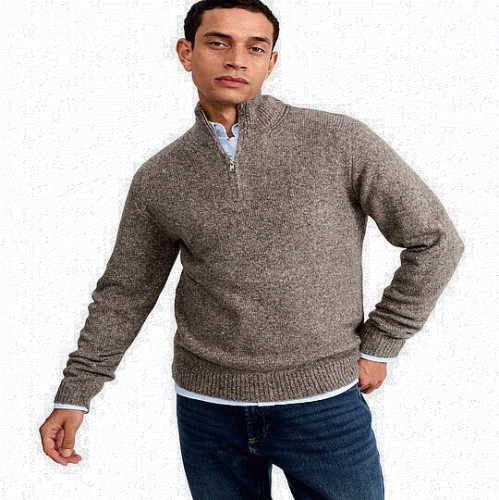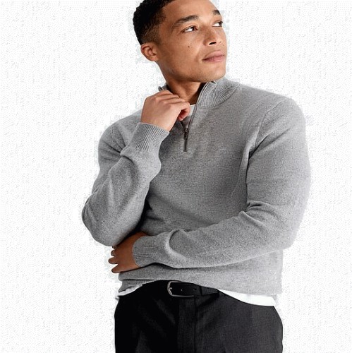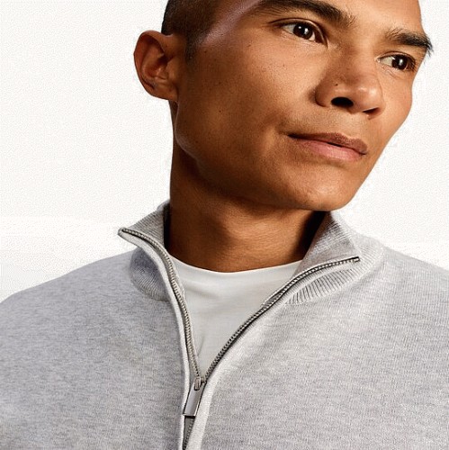 Pure Cotton Half Zip Knitted Jumper in Grey Marl