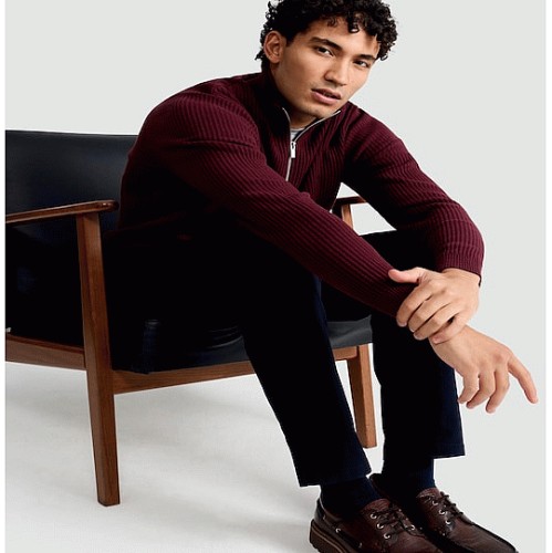 Pure Cotton Ribbed Half Zip Jumper in Burgundy