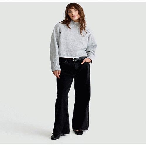 Knitted Sequin Bow High Neck Jumper with Wool in Grey