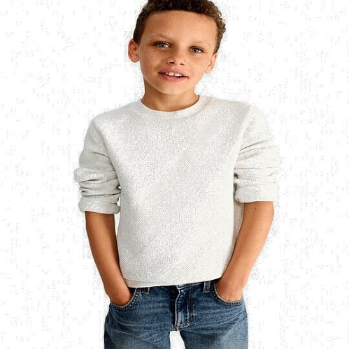F&F Boys Cotton Blend Textured Crew Neck Sweatshirt in Grey Marl