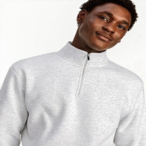 Cotton Rich Half Zip Funnel Neck Sweatshirt in Grey Marl