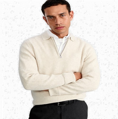 F&F Boys Chenille Half-Zip Knitted Jumper in Ecru