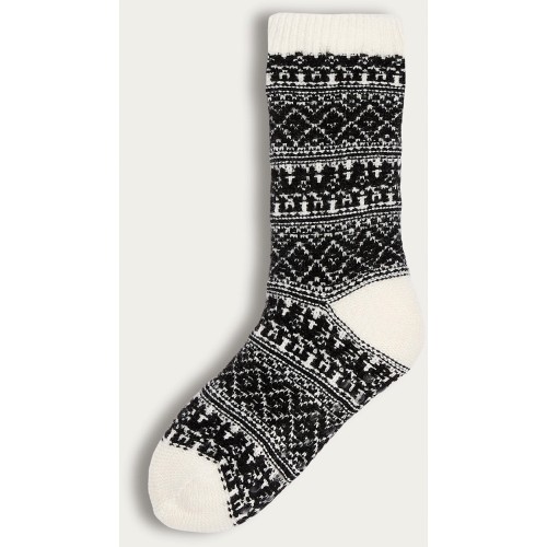 Knitted Fair Isle Fleece Lined Pom Pom Beanie in Multi