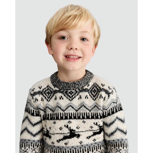 F&F Boys Reindeer Fair Isle Print Jumper in Grey