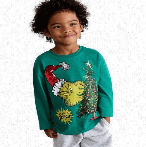 The Grinch Pure Cotton Christmas Tree Print Top in Green