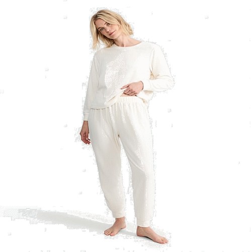 Fleece Cable Texutred Top and Cuffed Bottoms Pyjamas in Cream