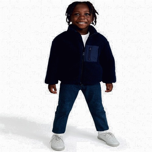 F&F Boys Fleece Pocket Front Zip Up Jacket in Navy