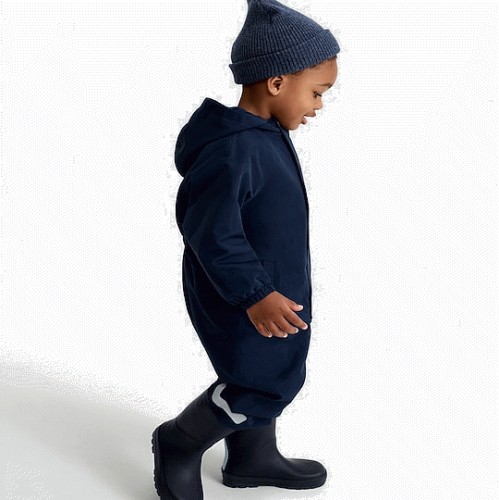 F&F Boys Fleece Lined Hooded Waterproof Puddle Suit in Navy