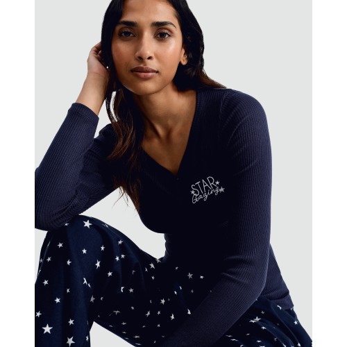 Textured Star Print Top and Bottoms Pyjamas in Navy