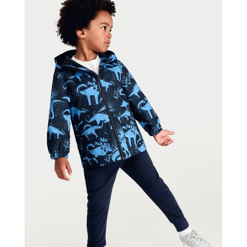 F&F Boys Dinosaur Print Shower Resistant Hooded Jacket in Blue