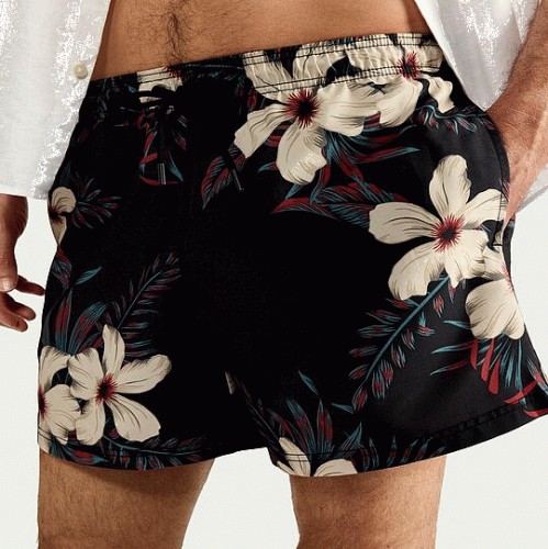Floral Print Swim Shorts in Black