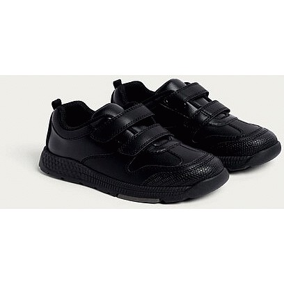 School Boys Double Strap Fastening Trainers in Black