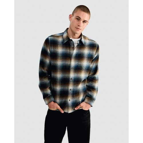 Pure Cotton Flannel Check Print Shirt in Khaki