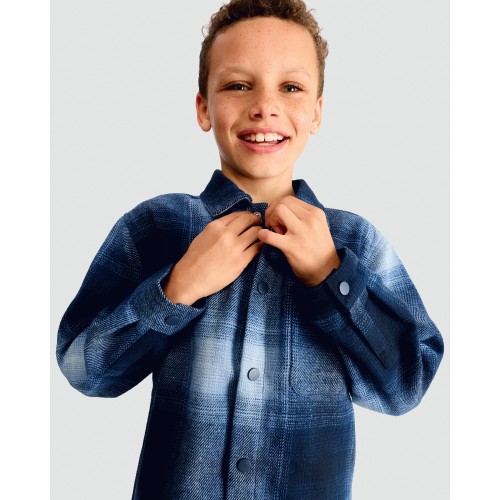 F&F Boys Check Print Pocket Front Shacket in Blue