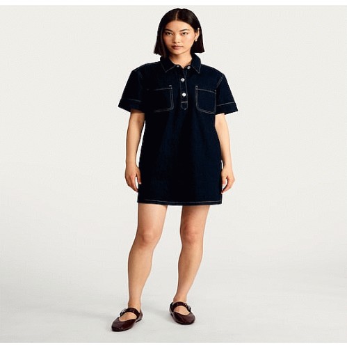 The F&F Edit Pure Cotton Pocket Detail Denim Shirt Dress in Navy
