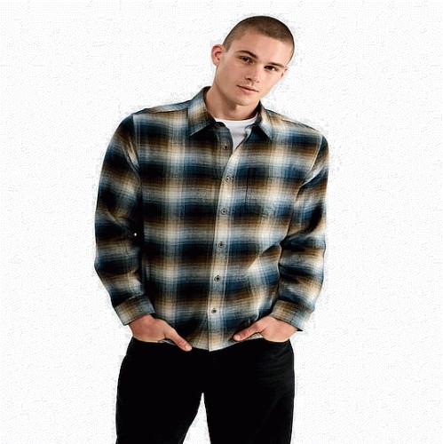 Pure Cotton Flannel Check Print Shirt in Khaki