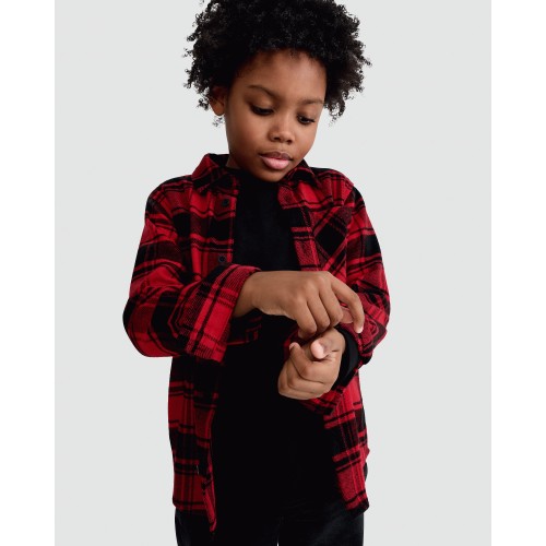 F&F Boys Pure Cotton Check Print Pocket Front Shirt in Red