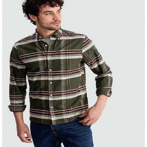 Pure Cotton Check Print Button Up Shirt in Khaki