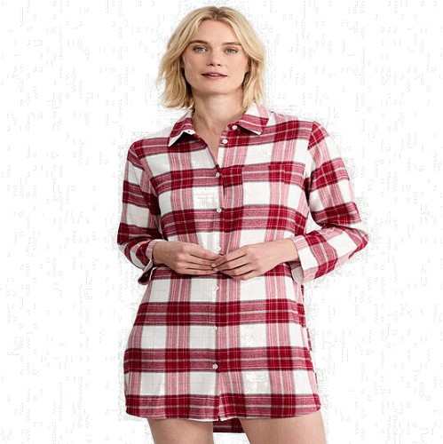 Pure Cotton Check Print Longline Pyjama Shirt in Multi Black