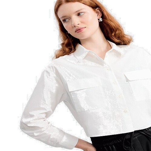 Pure Cotton Cropped Pocket Front Button Up Shirt in White