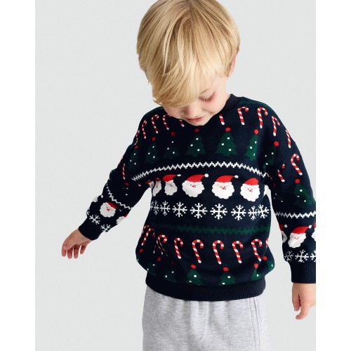 F&F Boys Cotton Rich Christmas Motif Jumper in Navy