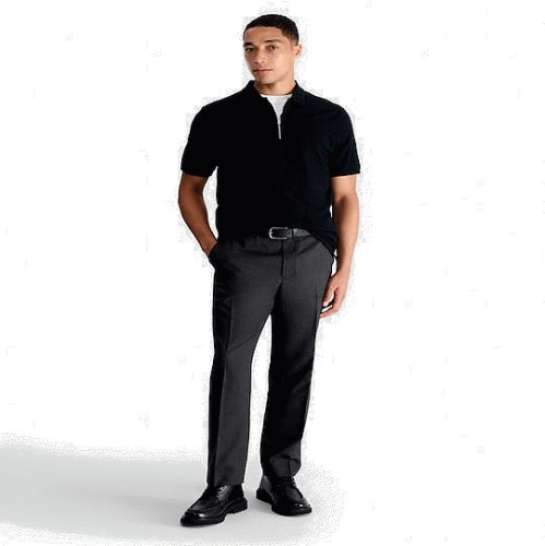 The F&F Edit Pure Cotton Textured Zip Neck Polo Shirt in Black