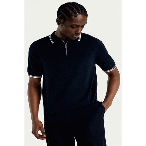 Pure Cotton Zip Neck Polo Shirt in Navy