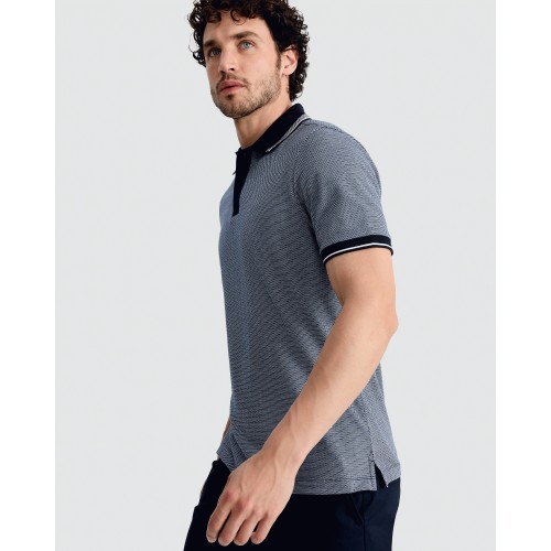 The F&F Edit Pure Cotton Textured Geometric Print Polo Shirt in Navy