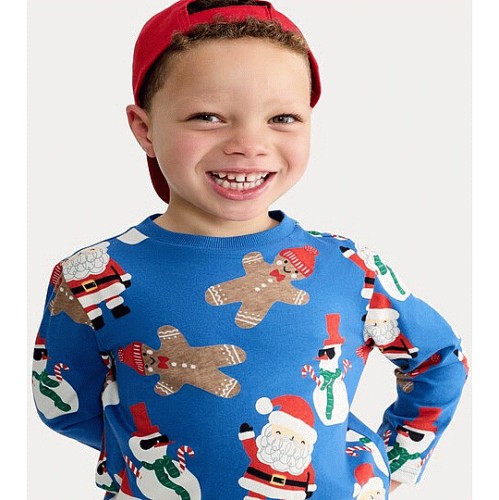 F&F Boys Pure Cotton Christmas Printed T-Shirt in Blue
