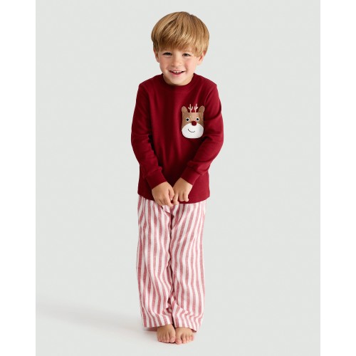 Boys Pure Cotton Reindeer Pocket Top and Bottoms Pyjama Set in Red