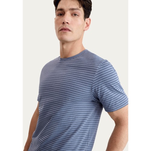 Pure Cotton Stripe Print Slim Fit T-Shirt in Blue