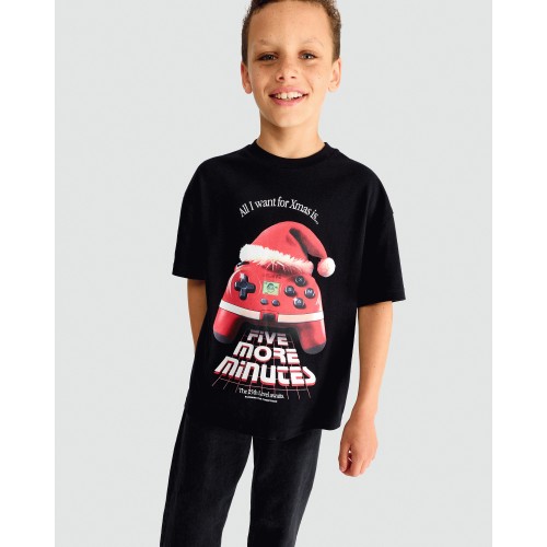 F&F Boys Pure Cotton Festive Print T-Shirt in Black