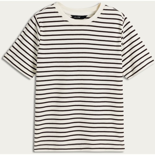 Pure Cotton Stripe Print T-Shirt in Multi Brown
