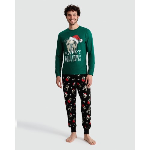Pure Cotton Happy Howlidays Top and Cuffed Joggers Pyjamas in Multi